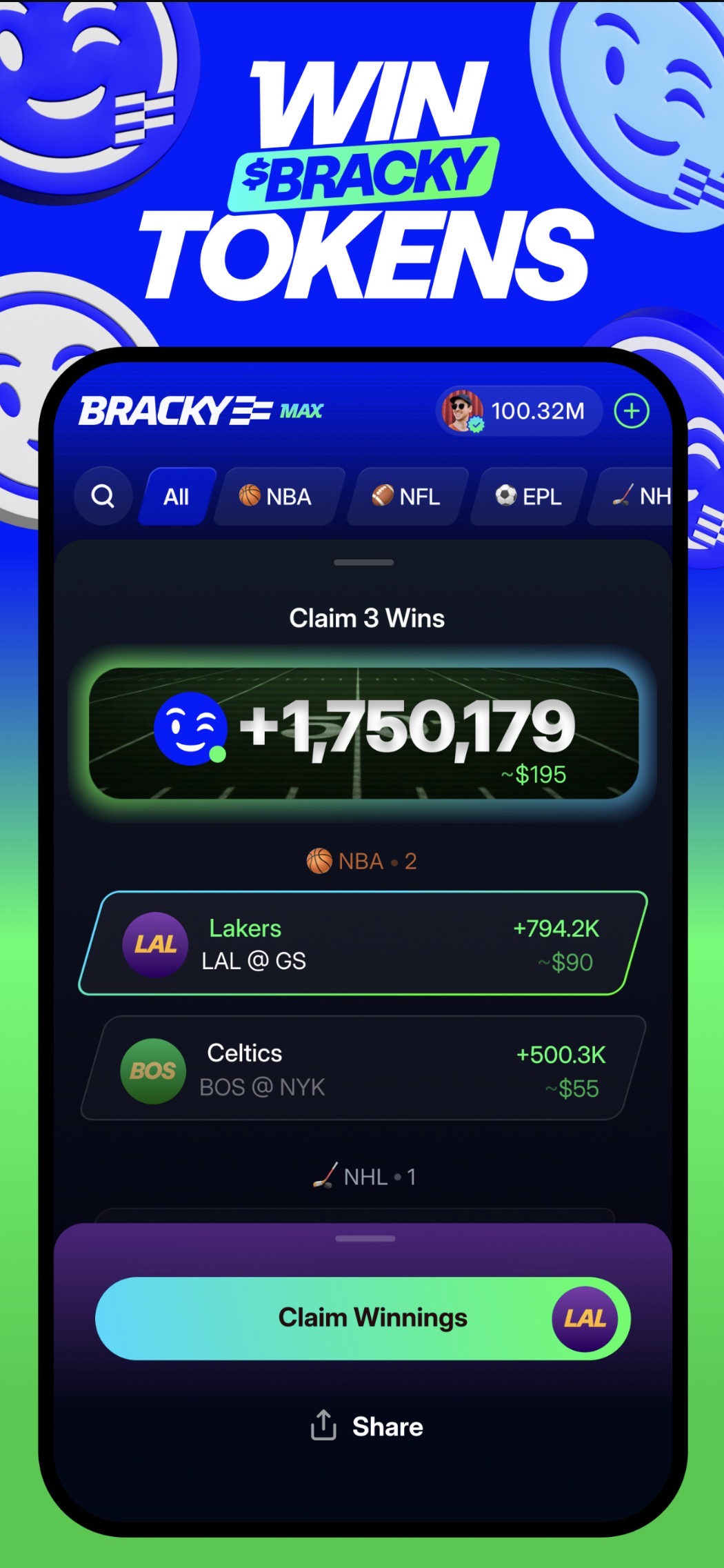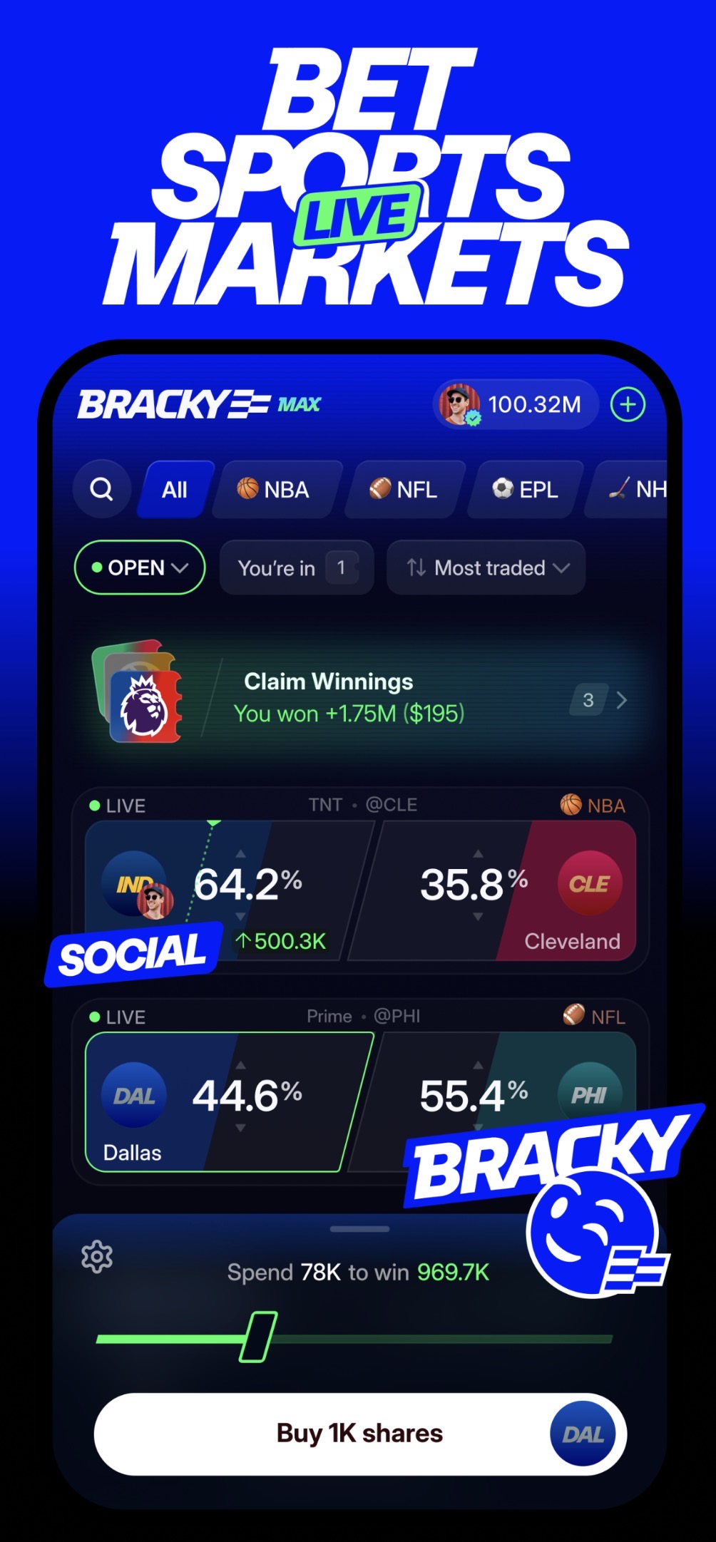 Bracky is a sports-focused prediction market where users buy and sell shares on game outcomes. Instead of fixed odds, prices move based on demand. Users can enter or exit positions at any time, and winning shares settle automatically once results are confirmed. Markets are public and social by default, allowing participants to see activity, pricing, and volume in real time. This makes Bracky feel closer to trading than traditional sports betting, with prices reflecting what the market collectively believes will happen. Bracky is currently focused on sports and live events, with markets created and shared directly through social feeds.