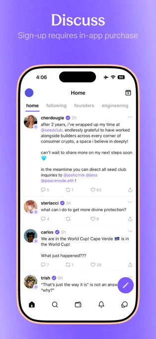 Farcaster is a decentralized social network that gives users ownership of their identity and social connections. Users can create a profile, publish public posts, reply to conversations, and send private messages while maintaining control over their account. Farcaster is designed as an open social protocol, similar to email, allowing the network to grow across multiple clients and applications. The platform is home to a global community of creators, developers, and crypto-native users who connect through open conversations and portable social identities.
